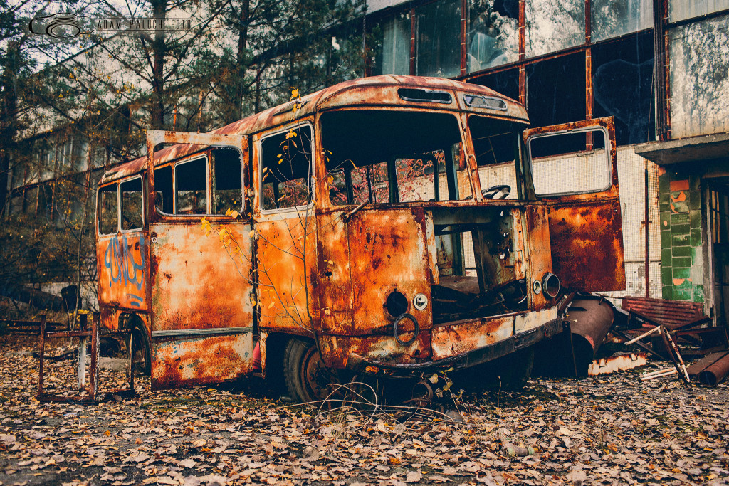 …Kiedy tam stoimy to cisza sama w naszych głowach maluje obrazy z przed 30 lat …Poruszając się po skażonym mieście nie sposób nie trafić na pozostawiane wszędzie autobusy…