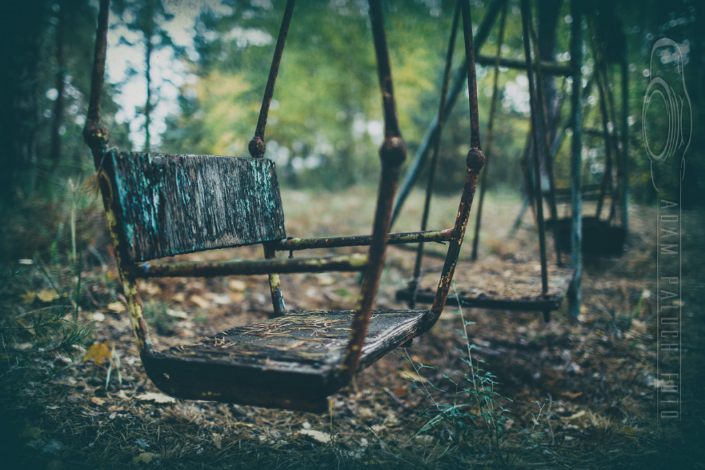 opuszczone huśtawki , Marek poruszył jedną z nich chciał ją rozbujać wydała smutny metaliczny dźwięk jakby tęskniła za dziećmi które tu kiedyś przychodziły…