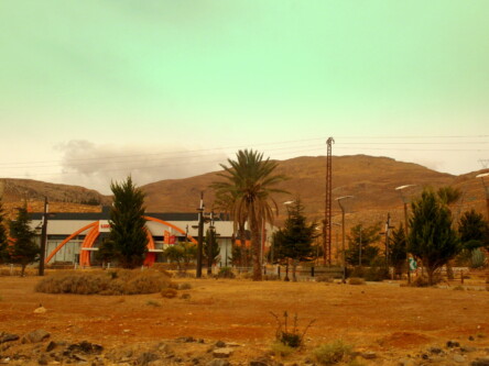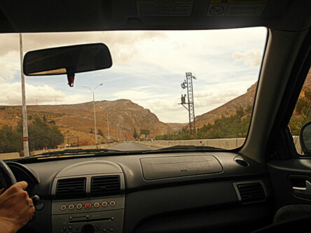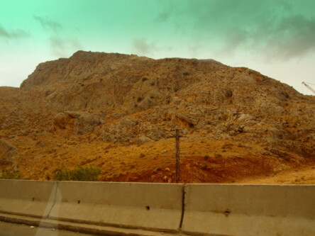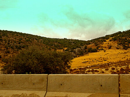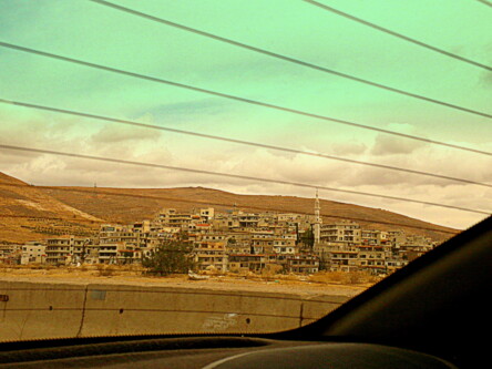 Pomiędzy Bejrutem, a Damaszkiem jest około 130 km i wspinaczka samochodu na 1500 m nad poziom morza. Pogoda znów nieco skisła, obszar górski z rzadka zabudowany. Zauważam czasem sztuczne kamienne kopczyki wtapiające się w krajobraz. To zapewne aparatura śledząca ruch i zachowanie na drodze. Kilka kilometrów przed granicą zaczynają się checkpoint-y, punkty kontrolne. Betonowe bariery, jazda zygzakiem pomiędzy beczkami zalanymi betonem, wojsko z długą bronią, czasem budki żelazne, albo betonowe budynki klasy waga do traktorów w opuszczonym Pe Gie eRze. Wszystko tak ułożone, aby z rozpędu się nie przebić. Teraz zaglądanie do bagażnika, na nasze twarze, czapka z głowy, paszport w dłoni, ale całkiem to przyjazne. A najważniejsze w tym wszystkim to ruch ręką naszego kierowcy. Paczuszka zwiniętych banknotów wsuwana z dłoń wojskowego. Trzy, albo cztery takie punkty po libańskiej stronie i wreszcie cel ostateczny – budynek odprawy.