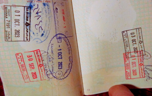 Kierowca nam pomaga, ma za to zapłacone, jest elementem układanki całej tej wycieczki. Wewnątrz tłum i harmider. Długa z 20 metrów lada z szybą i celnikami po drugiej stronie. Panowie o ciemnych zaczesanych do tyłu włosach, często w ciemnych okularach, palą papierosy, zagadani pomiędzy sobą. Trzy strefy okienek i barierek; 1) sami swoi, 2) sami swoi – rodziny. 3) Araby i cudzoziemcy. Pierwsze dwie strefy oblężone, dużo tam kobiet z dziećmi, wielu ubranych na czarno. Takich jak my raczej znikomo. Jakaś młoda blondynka z plecakiem obok i sobie radzi.