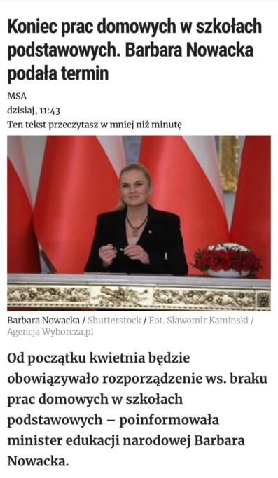 Zdecydowanie nie popieram tych działań Minister Barbary Nowackiej, nie z uwagi na jej barwy polityczne, lecz na treść i konsekwencje podejmowanych decyzji dla rozwoju intelektualnego uczniów.